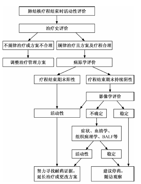 2.化疗不彻底和治疗不规律的患者:需要调整治疗和管理方式,确保完成疗程后再行活动性评价,同时观察细菌学和影像学的动态变化。