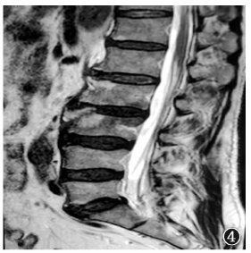 病例4,男性,62岁。2018年8月22日于外院摄腰椎MRI,显示腰3~4椎体前缘变尖、椎间隙狭窄,可见斑片状短T1、长T2信号影,压脂序列呈高信号,增强扫描明显强化,T2加权成像显示部分椎间盘信号降低,腰3~4椎间盘组织向椎体后方突出,硬膜囊轻度受压,椎管无狭窄